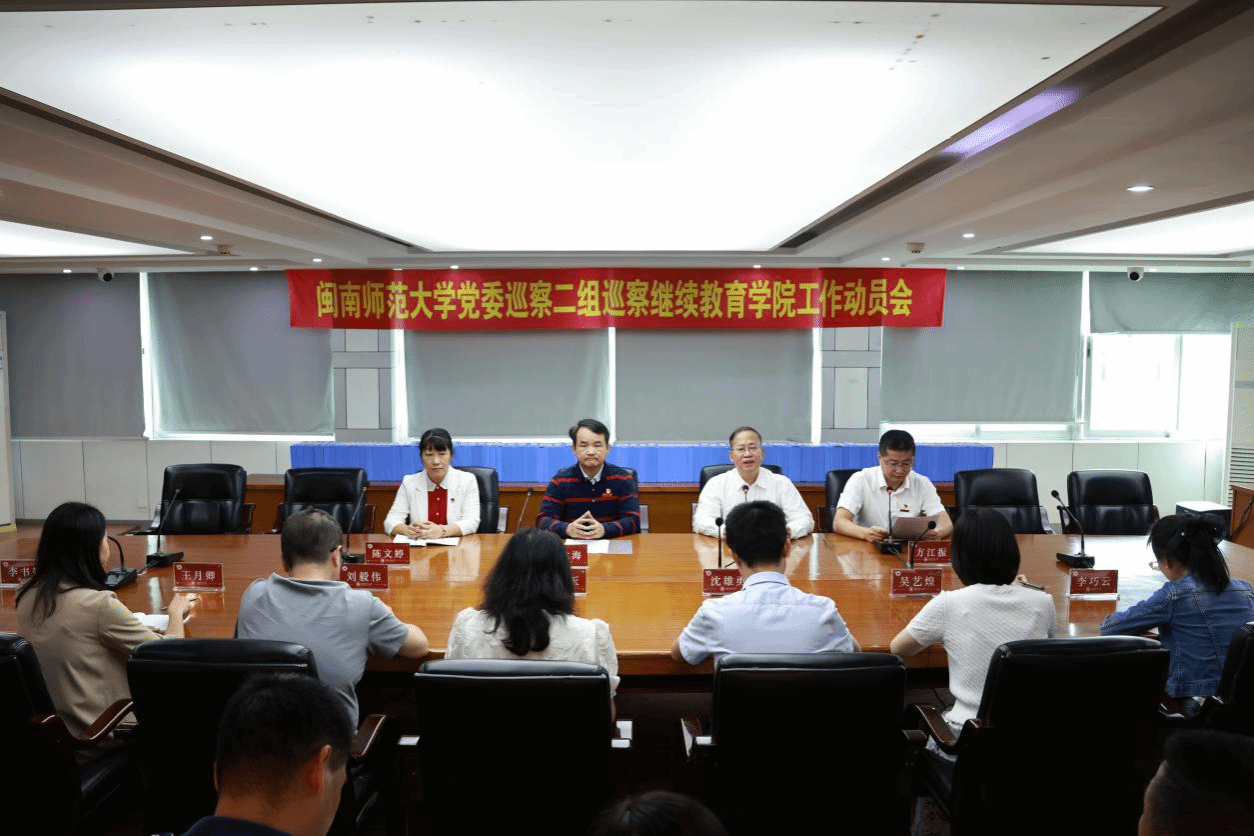 根据校党委巡察工作部署要求,10月22日上午,校党委巡察二组巡察继续教育学院工作动员会在逸夫宾馆三楼会议室召开。会前,校纪委综合室副主任、巡察办副主任沈雄勇主持召开与继续教育学院领导的沟通见面会。动员会上,巡察二组组长李定庆作动员讲话,校党委副书记、校长张龙海对做好巡察工作提出要求,继续教育学院副院长方江振主持会议并作表态发言。巡察二组全体成员、巡察办相关人员、全体教职工参加会议。