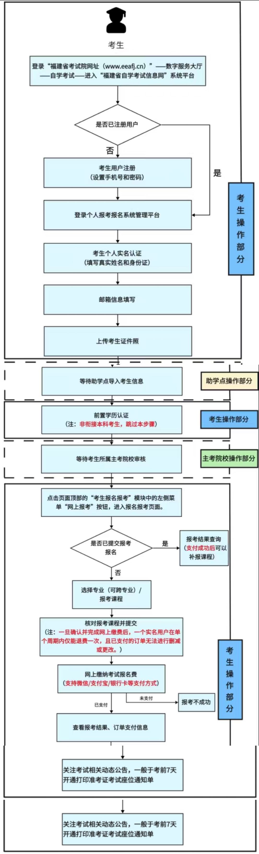 1、统考时间安排:网上报名:以福建省教育考试院通知为准,通常为每年2月和9月两次报考,每次最多报考四门课程。
